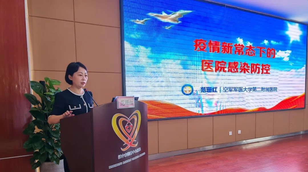 范珊红老师从个人防护、清洁消毒管理、医疗织物医疗医废处理、呼吸道职业暴露、接触和飞沫传播的预防措施等方面进行授课讲解,再次强调严格遵守新冠防治等基础操作规范的重要性。