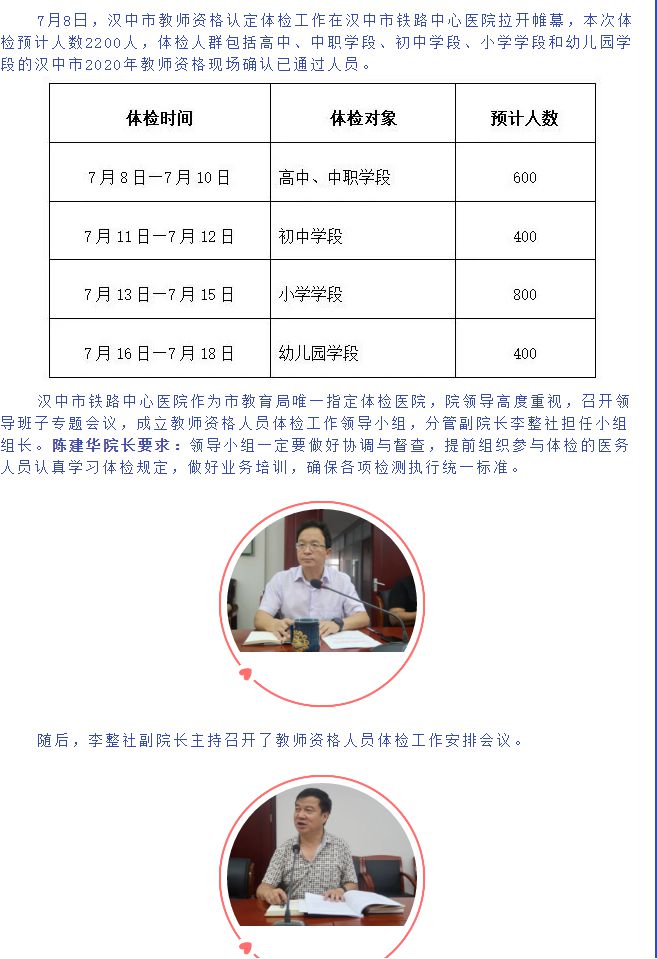 汉中市铁路中心医院全力以赴开展市教师资格认定体检工作