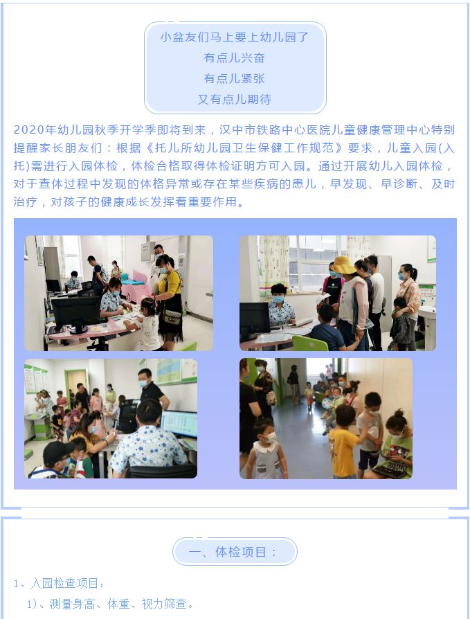 儿童健康管理中心提醒你——入托入园要记得来体检哦
