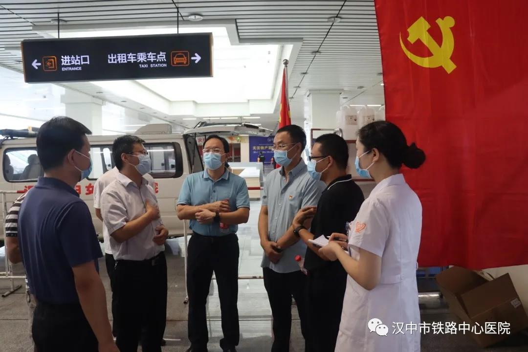 8月5日下午,市直机关工委书记张振文、副书记黄新勇等一行4人到汉中市铁路中心医院火车站核酸检测点调研我院火车站核酸检测点临时党支部工作,看望慰问一线核酸采集工作人员。市卫健委党组书记王平安,市计生协会专职副会长、市卫健委直属机关党委副书记金建忠,市铁路中心医院党委副书记、院长陈建华等陪同调研。