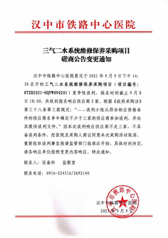 三气二水系统维修保养采购项目磋商公告变更通知