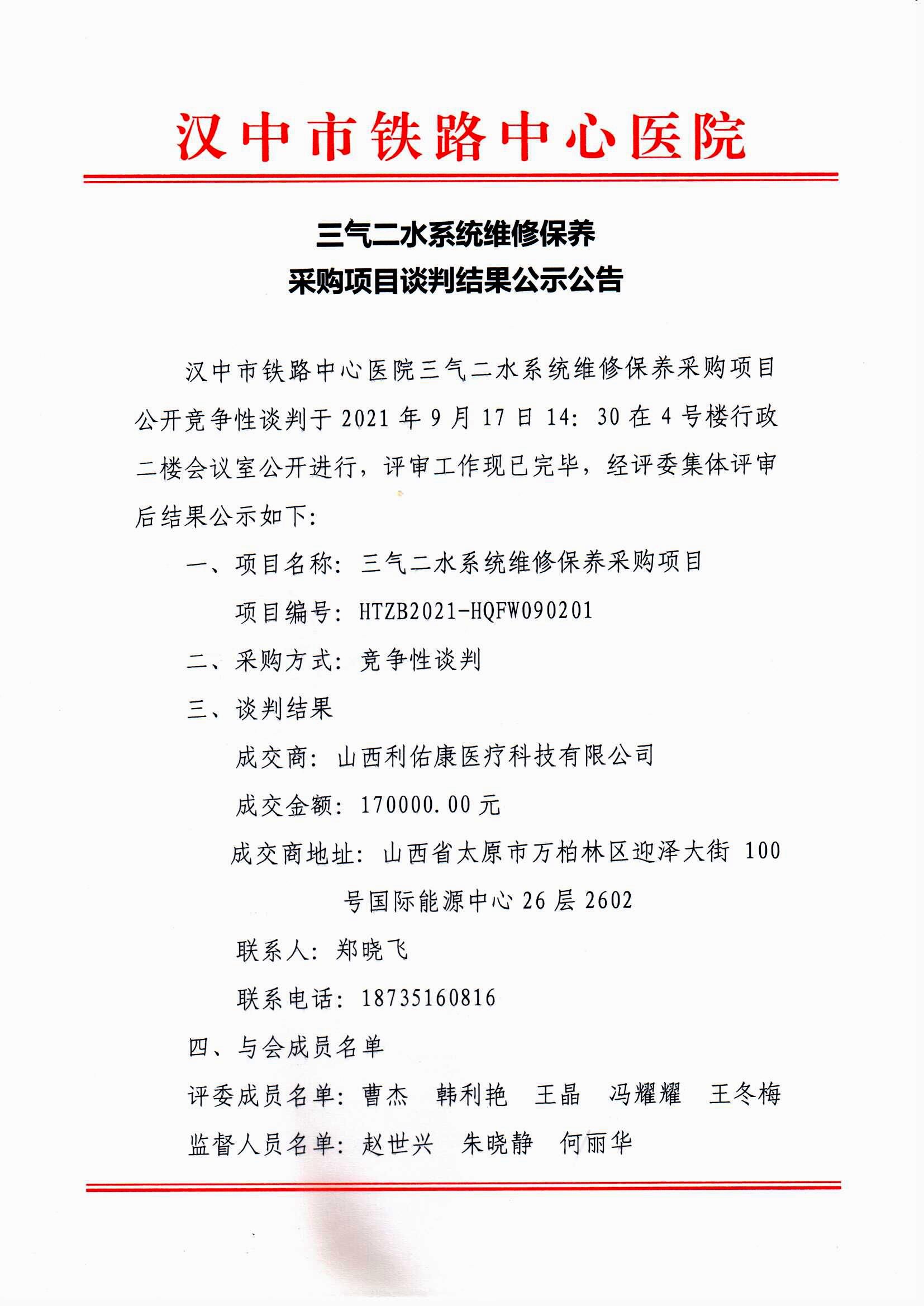 三气二水系统维修保养采购项目谈判结果公示公告
