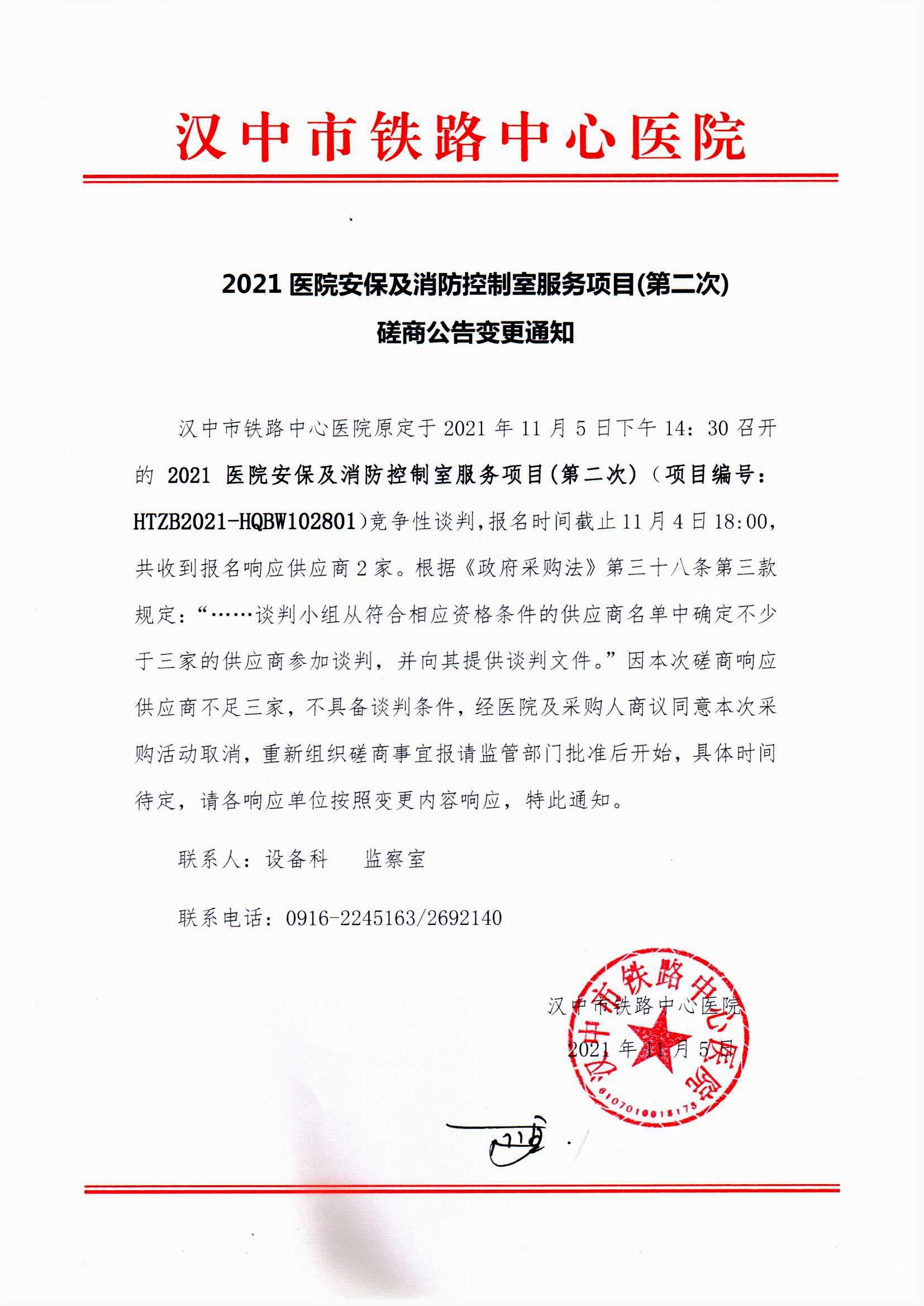 2021医院安保及消防控制室服务项目(第二次)磋商公告变更通知