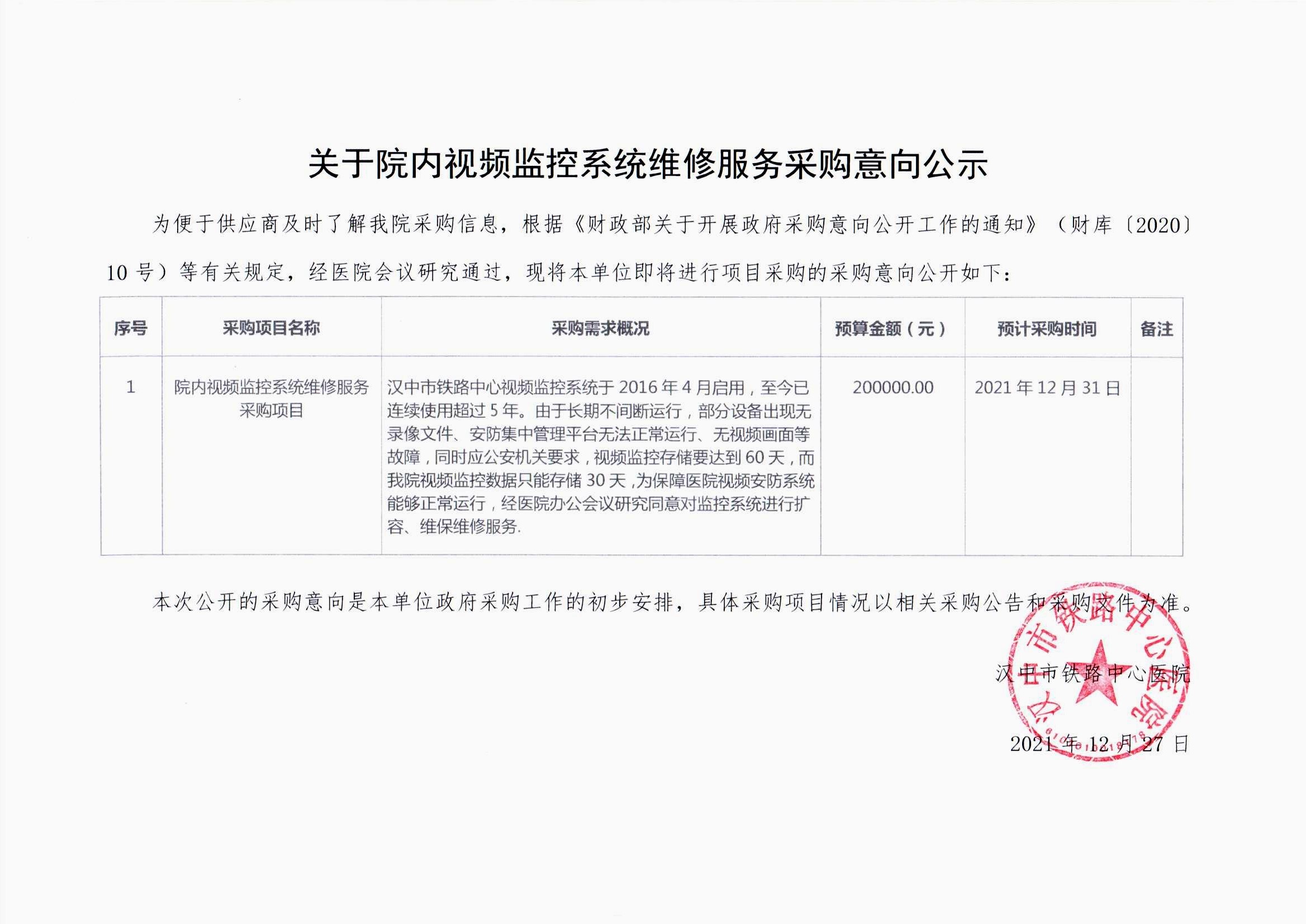 院内视频监控系统维修服务采购项目竞争性磋商公告