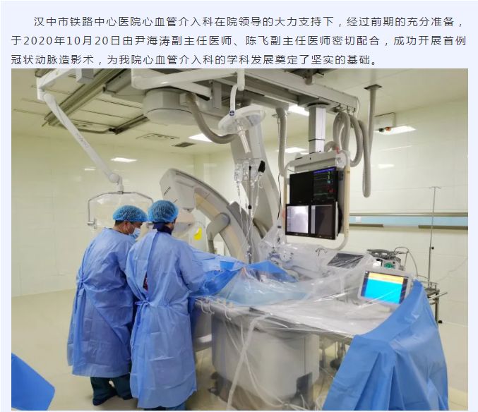 汉中市铁路中心医院心血管介入科成功开展首例冠状动脉造影术