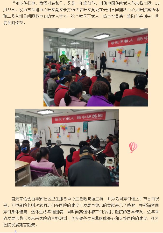 敬天下老人 扬中华美德——汉中市铁路中心医院召开离退休职工重阳节茶话会