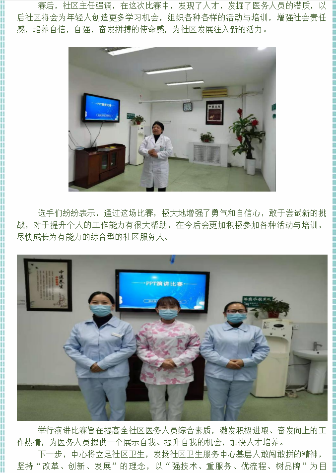 探索创新 激发活力 争做新时代社区卫生服务人 记丰辉社区卫生服务中心健康教育传播技能比赛