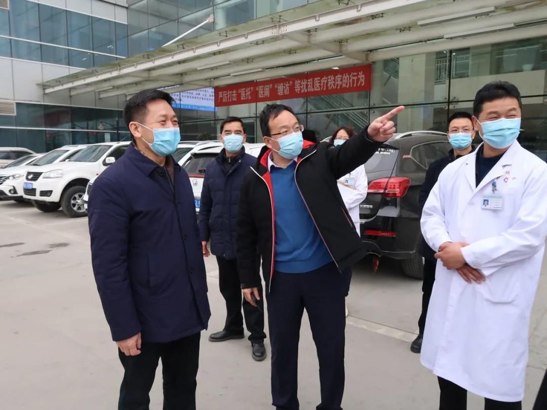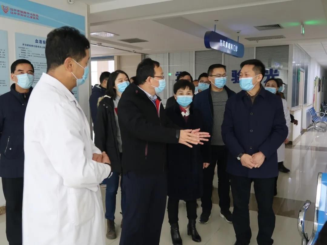 在汉中市铁路中心医院院长陈建华等院领导和疫情防控职能部门负责人的陪同下,于局长一行检查了我院的预检分诊处、发热门诊和发热病区、住院部等,并详细询问了流调人员相关的检查流程及重点注意事项,以及全面落实“亮码+测温+戴口罩”管控措施。