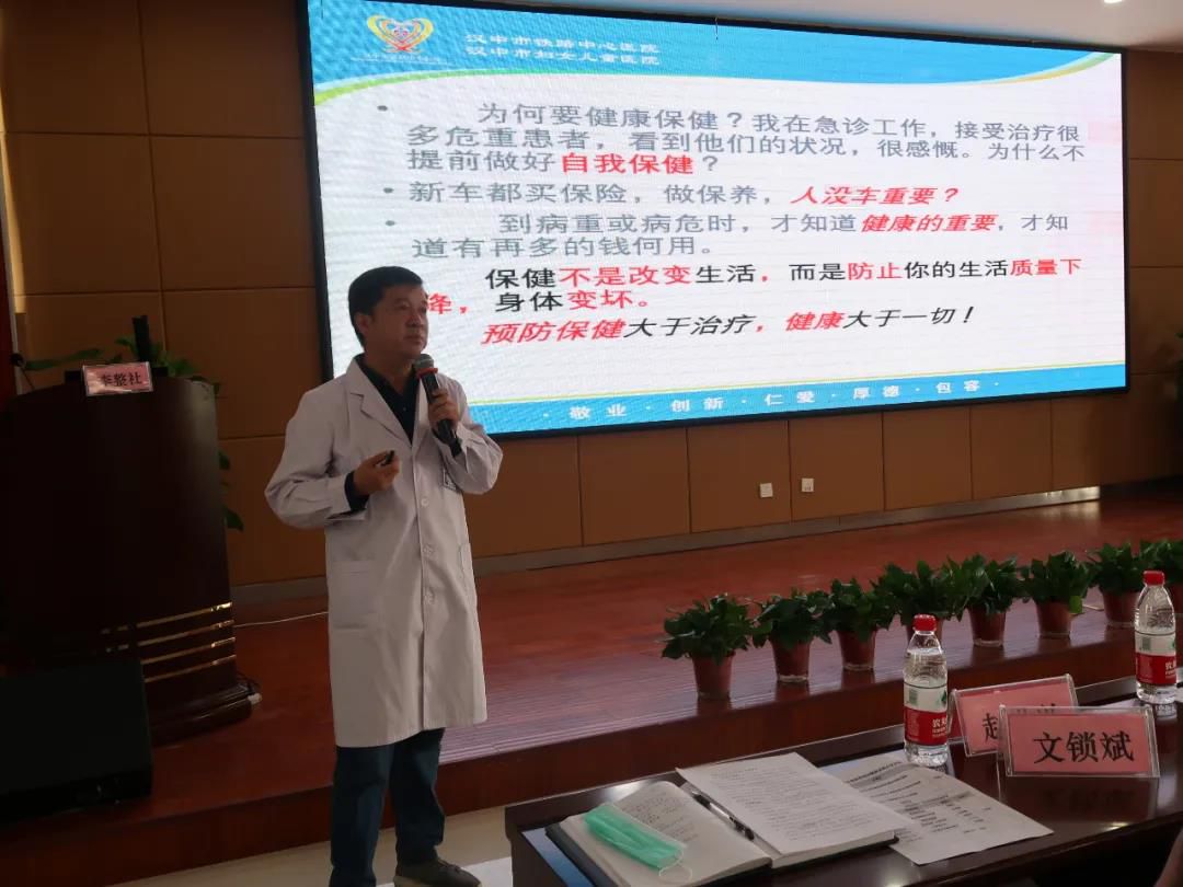 接下来的健康讲座环节,首先由汉中市铁路中心医院副院长,国家高级健康管理师李整社,为大家带来主题为“健康新理念”的讲座,他用幽默诙谐的语言寓教于乐,生动阐述了健康的重要性,健康的生活方式,常见慢性病的干预和心理调适等知识。