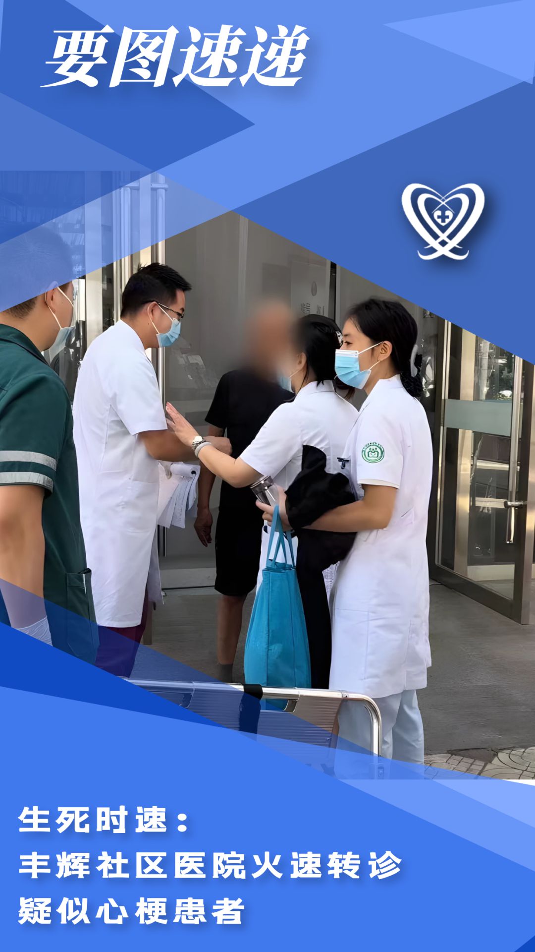 不到10分钟,120急救人员迅速赶至丰辉社区卫生服务中心大门口,丰辉社区医院医护人员与急救人员做好交接后,患者董伯伯于9点49分成功转运至上级医疗单位进行救治。下午15点左右,从上级医院得知,董伯伯已被心内科收治住院治疗,目前生命体征平稳。
