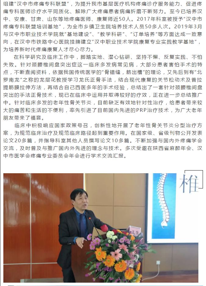 汉中市铁路中心医院疼痛科主任王俊:止疼治痛、大医精诚