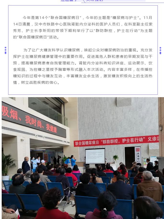 【科室动态】肾脏内分泌科“群防群控,护士在行动” ——第14界世界糖尿病日活动