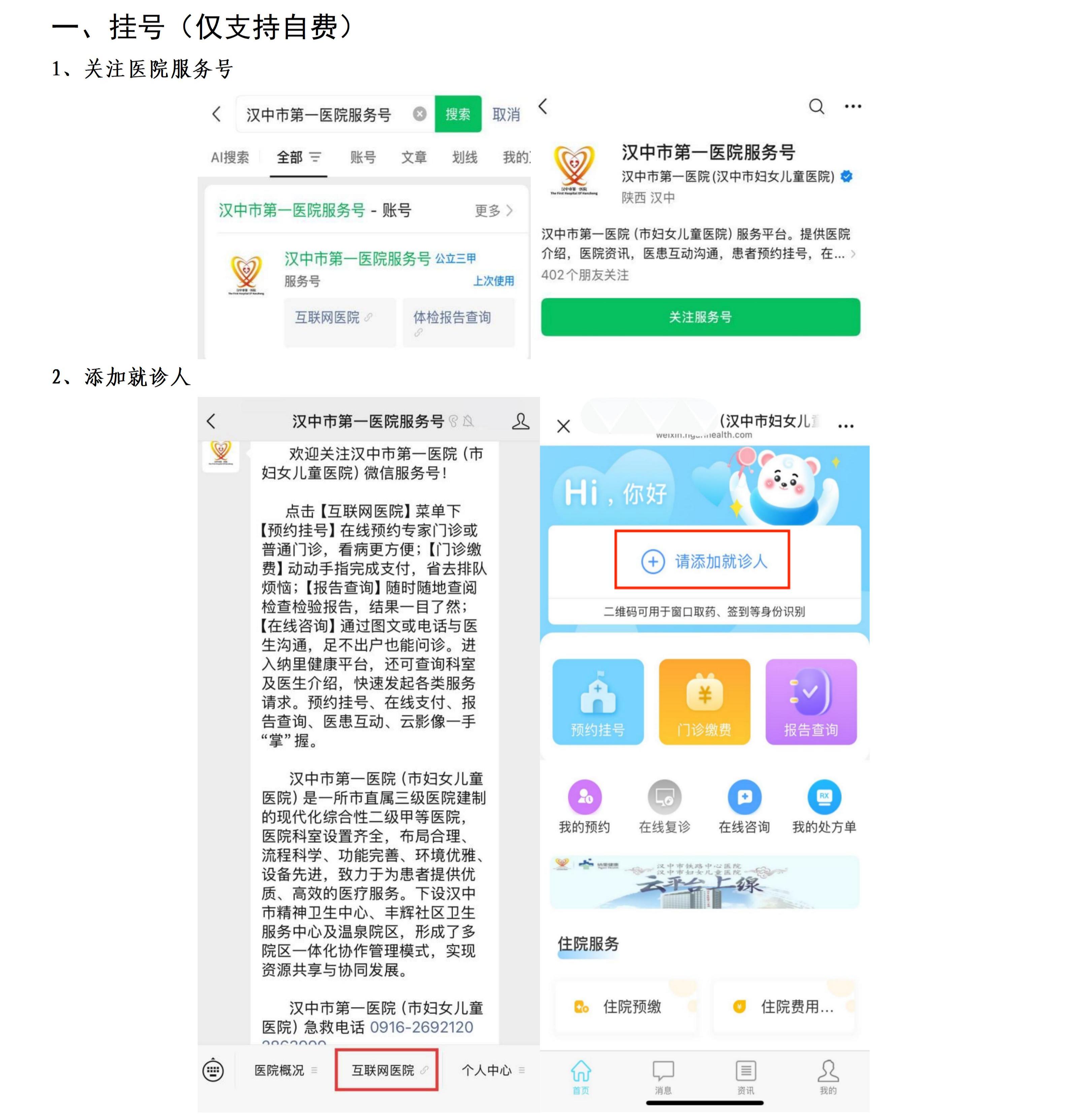 汉中市第一医院服务号挂号缴费查询等操作指南