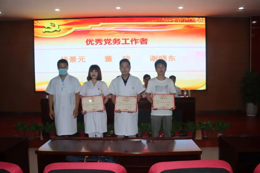院党委委员、副院长李整社宣读了表彰决定:医院对2个先进基层党组织、8名优秀共产党员、3名优秀党务工作者予以表彰。院领导为先进基层党组织、优秀共产党员和优秀党务工作者颁奖,并向他们表示祝贺!
