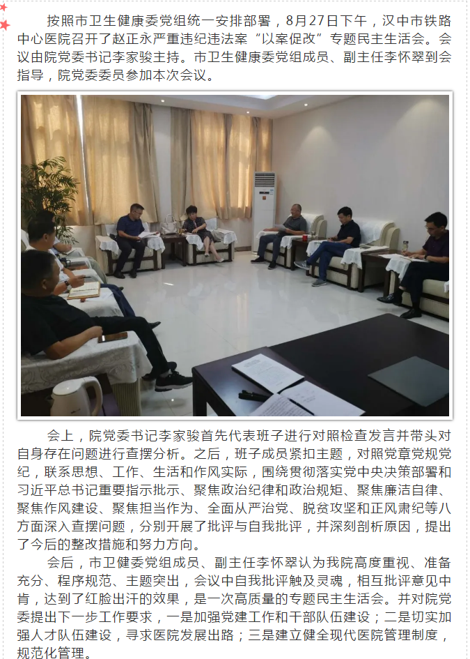 汉中市铁路中心医院召开赵正永严重 违纪违法案“以案促改”专题民主生活会